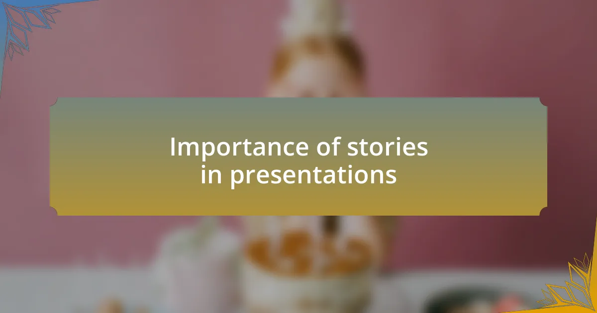 Stories serve as the heart of any compelling presentation, acting as a bridge between information and the audience. I recall a time when I noticed a shift in the room during a presentation that included a poignant story about overcoming a challenge. Suddenly, the air felt charged with empathy and understanding. This is the power of storytelling; it has the ability to turn passive listeners into active participants, encouraging them to relate and reflect.