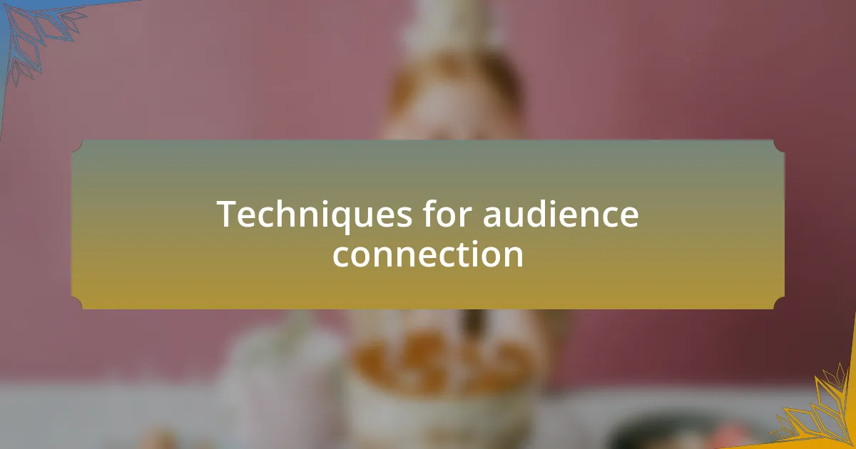 One of the most effective techniques I’ve found for connecting with an audience is the use of personal anecdotes. For instance, I once shared a story about a moment of vulnerability in my career—a time when I faced a significant challenge that many in the audience could relate to. I could see heads nodding in agreement, and it struck me how this shared understanding bridged the gap between me and the audience. Have you ever witnessed a moment when someone’s honesty transformed the atmosphere in the room? It’s truly powerful.